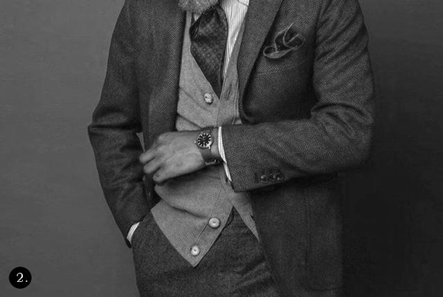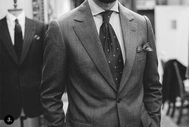 2. kép: Ha a nyakkendő választásnak, magának a tettnek van minősége (természetesen létezik ilyen, erről beszélek), akkor ez itt a legmagasabb polcra sorolandó. És ez most nem csak a nyakkendőre igaz. De mitől olyan kitűnő ez az összeállítás? Egyrészt, a színek tónustartománya tökéletes. A finom barna alap, a szürkéskék, a bordó, mind szép, meleg árnyalatok, miközben a színintenzitás is tökéletesen kiegyensúlyozott. A szürke flanelnadrágról tudjuk, hogy az 1. számot viseli a férfi ruhatárban, ami azt jelenti, lényegében bármilyen zakóval a legautentikusabb társítást adja. Persze a szürkének is vannak árnyalatai, hibát azonban itt sem sikerült véteni. Igen! Ezt nevezzük harmóniának, az erők egyensúlyának, a nagybetűs Összhangnak.